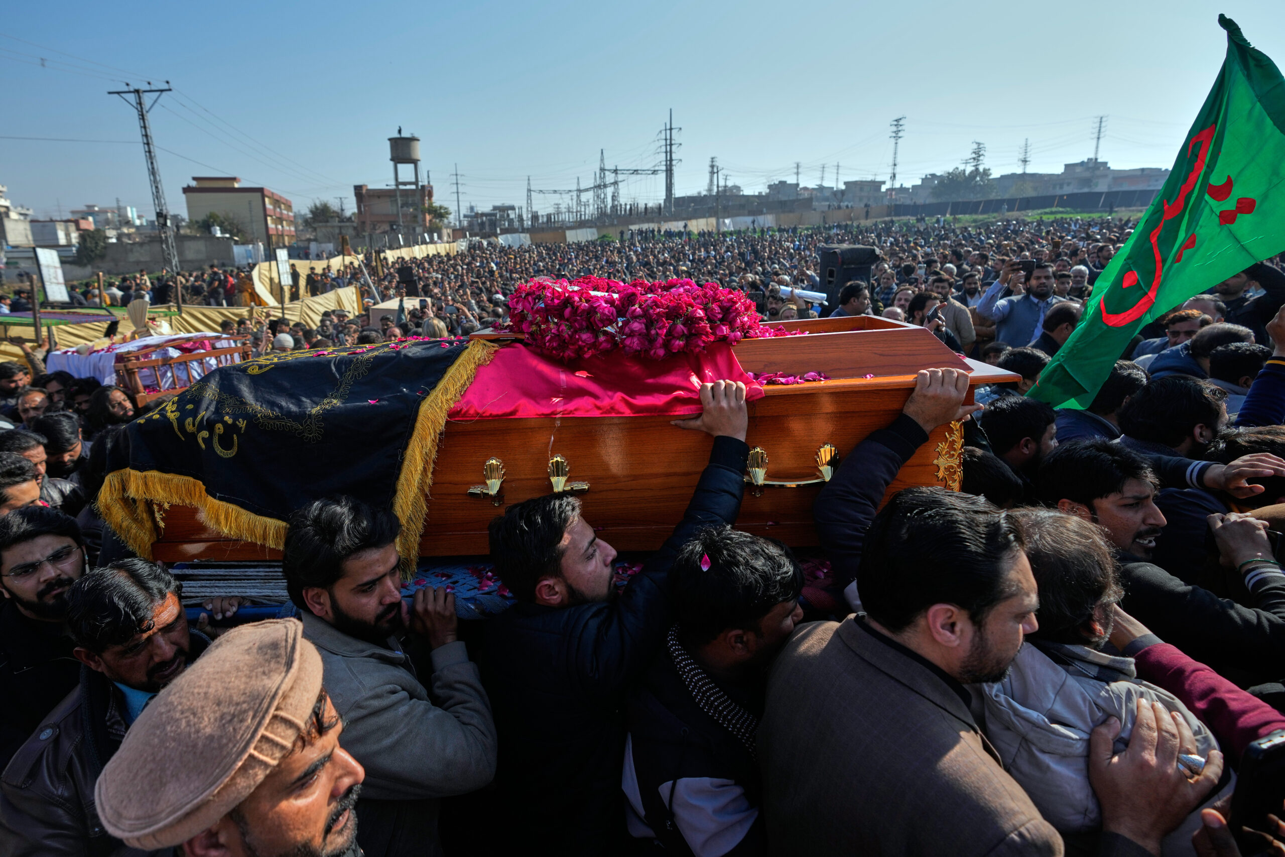 Hiljade ljudi okupile su se na sahrani 31 osobe ubijene u samoubilačkom napadu na šiitsku džamiju Hadidža Tul Kubra Imambargah na obodu Islamabada.